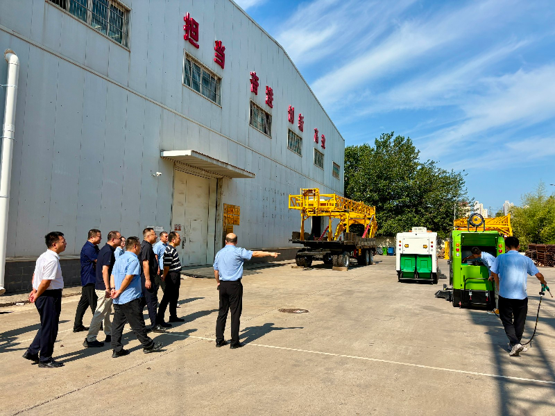專家組一行首先參觀了二一〇所生產(chǎn)車間,詳細了解車間整體布局及裝備制造工藝。二一〇所黨委委員、副總經(jīng)理白寧博重點介紹了自主研發(fā)的新型鉆機及智能清掃車,對該設備的技術(shù)特點、性能指標及應用場景進行了詳細講解。