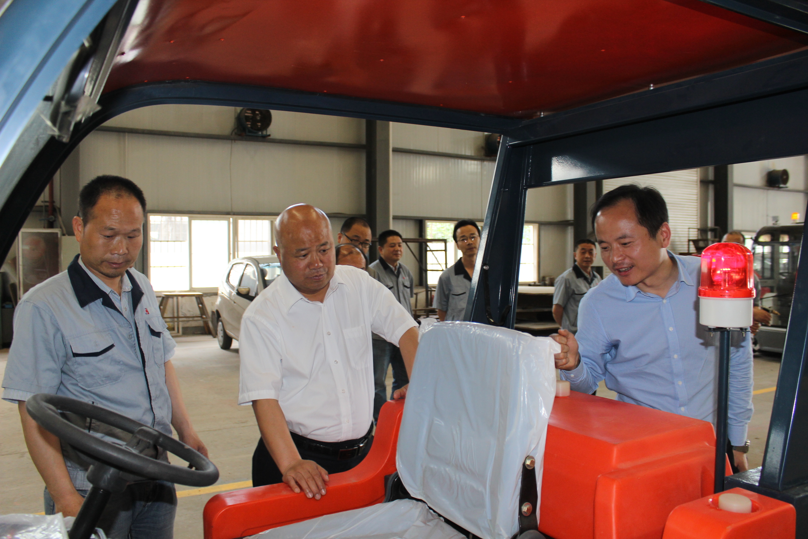 高利鵬副總首先在核昌公司總經理王超宏等人的陪同下,視察了清掃車生產現場,尤其對近期研發的新型清掃車相關性能及生產情況進行了詳細的詢問。