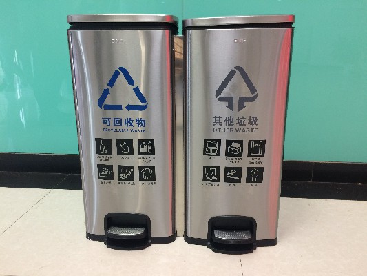 企事業單位款垃圾桶,金屬材質,凸顯企事業單位的商務氣息與沉穩大氣;翻蓋設計,讓室內環境免受垃圾的污染;大容量設計,讓垃圾桶吃盡種種廢物;分類圖示,讓垃圾能夠輕松“回家”。