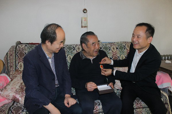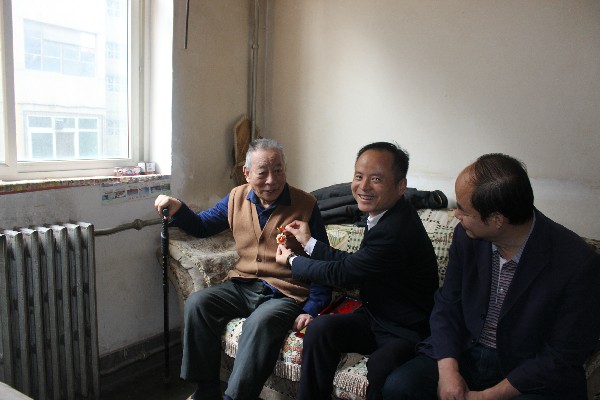 公司黨委書記、董事長王超宏將紀念章逐一送到邵汝澤、楊文起和崔榮壽等3名建國前參加工作的90多歲離休老干部手中,并親手為老同志佩戴上紀念章,其中邵汝澤接過紀念章激動地表示,80歲以后就將自己的生日改到了10月1日,在這一天與祖國共同慶祝,他還每天堅持讀報看新聞,關心時事,將“不忘初心,牢記使命”鐫刻在自己的生命中;崔榮壽戴上紀念章后熱淚盈眶,強烈要求與公司領導合影留念。看到三位老人身體健康、精神矍鑠王書記感到非常欣慰,囑咐他們保重身體,同時對他們在新中國建設過程中無私奉獻的精神致以崇高的敬意。